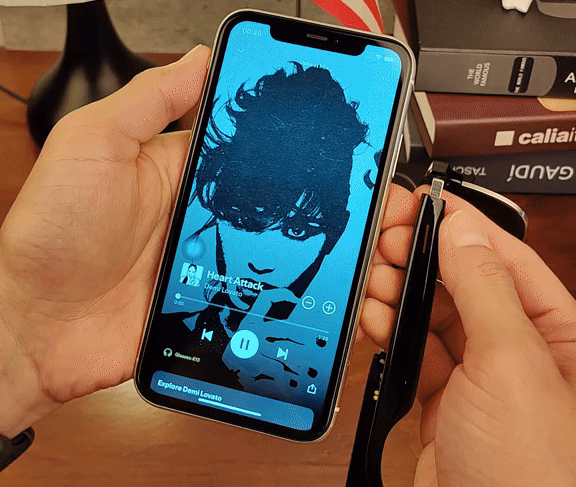 Enjoy the freedom of listening to music and answering calls directly from your glasses, with crystal-clear and discreet sound that only you can hear. All at the touch of a button.